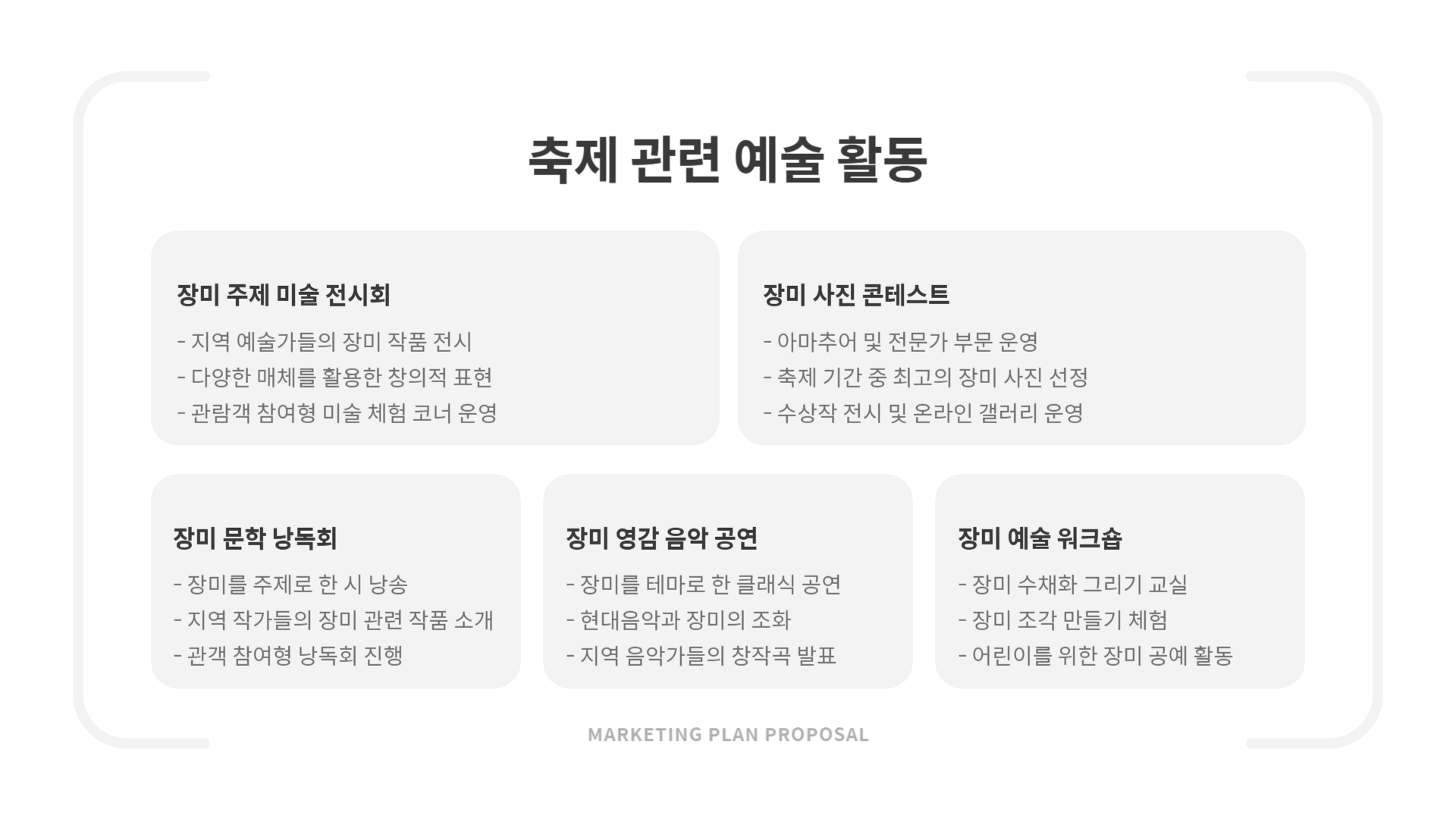 - 개막식 공연: 지역 예술단체 및 초청 가수 공연