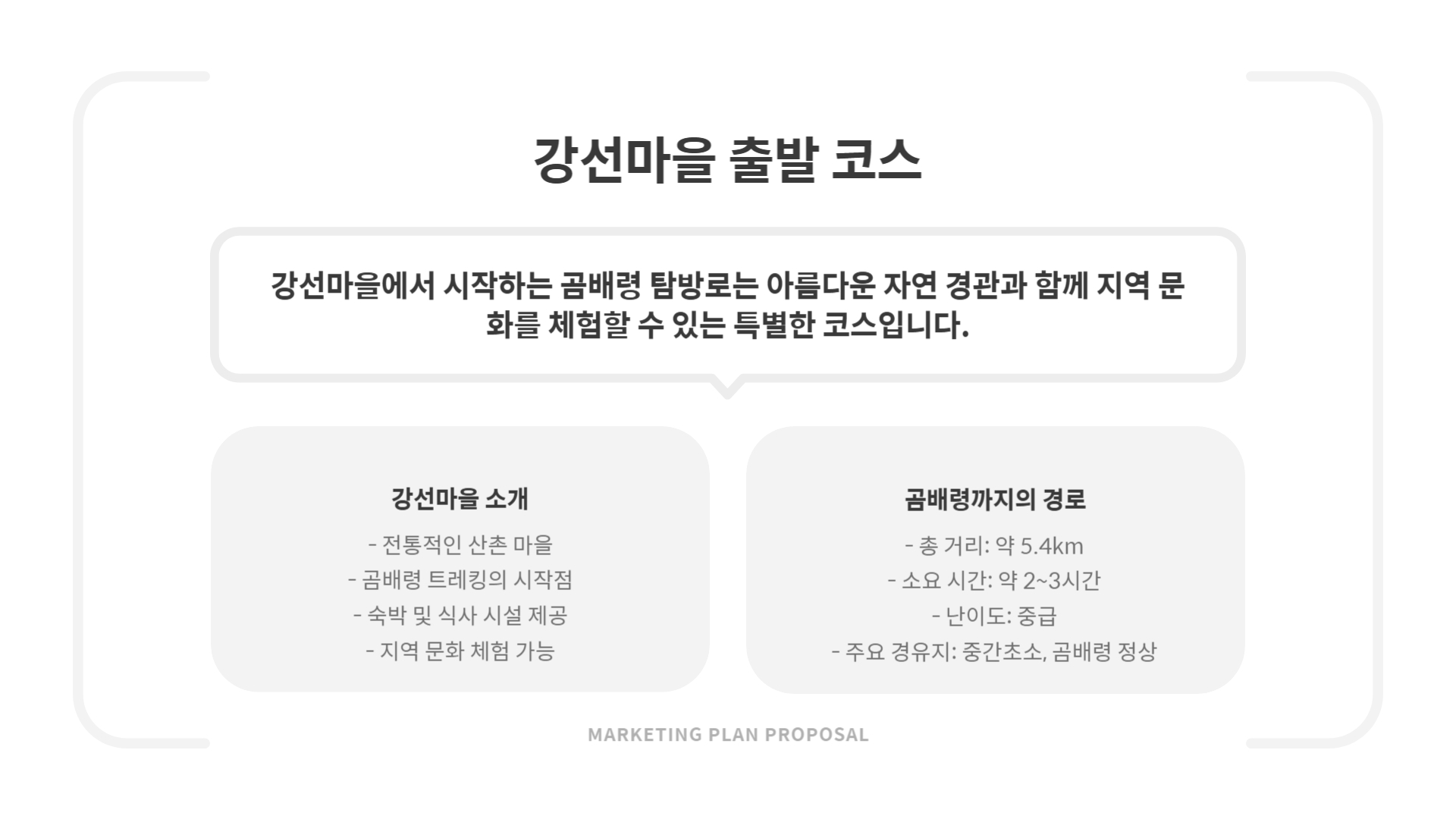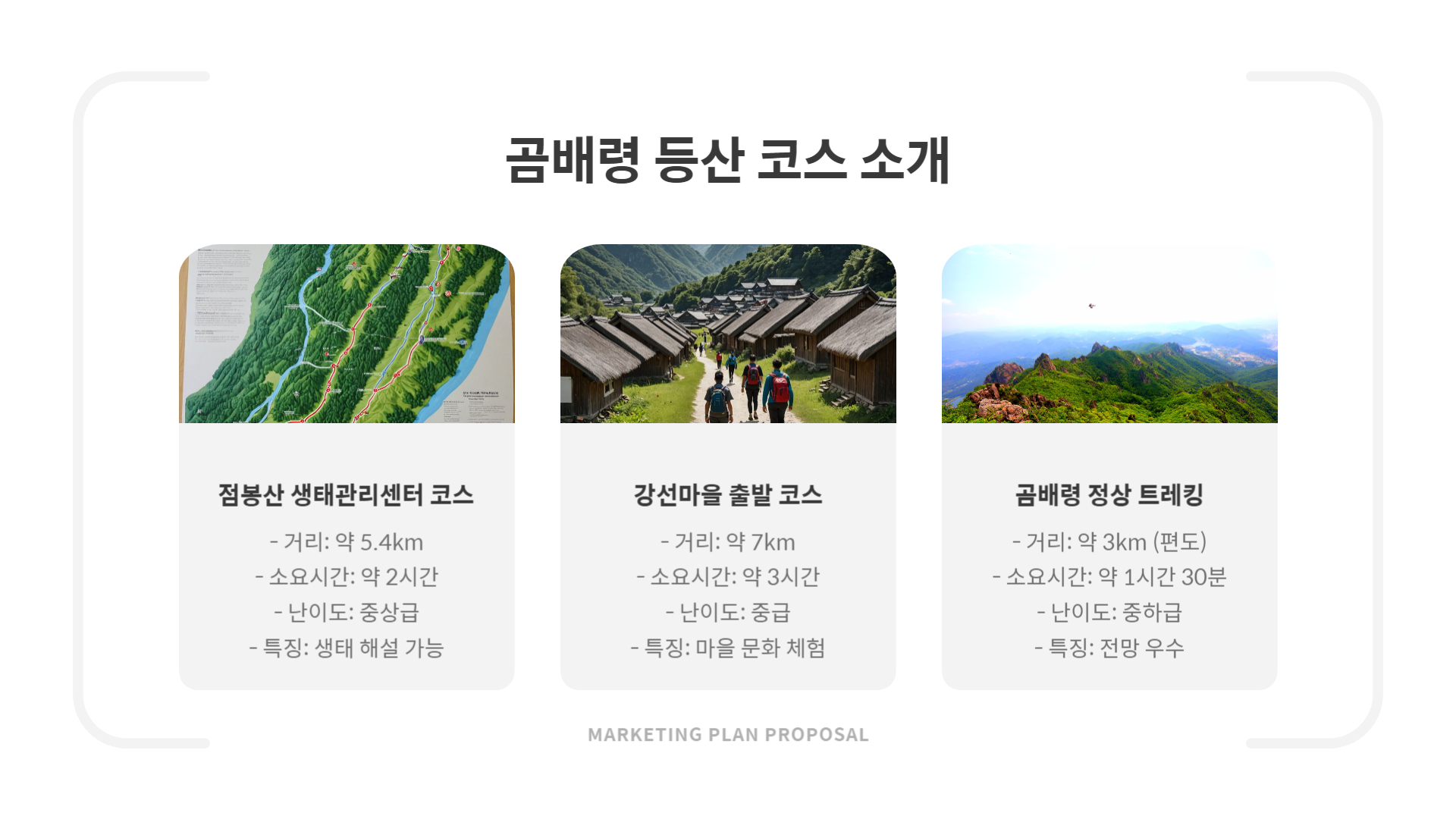 - 난이도: ★★★☆☆ (초보자도 가능하나 꾸준한 오르막 있음)