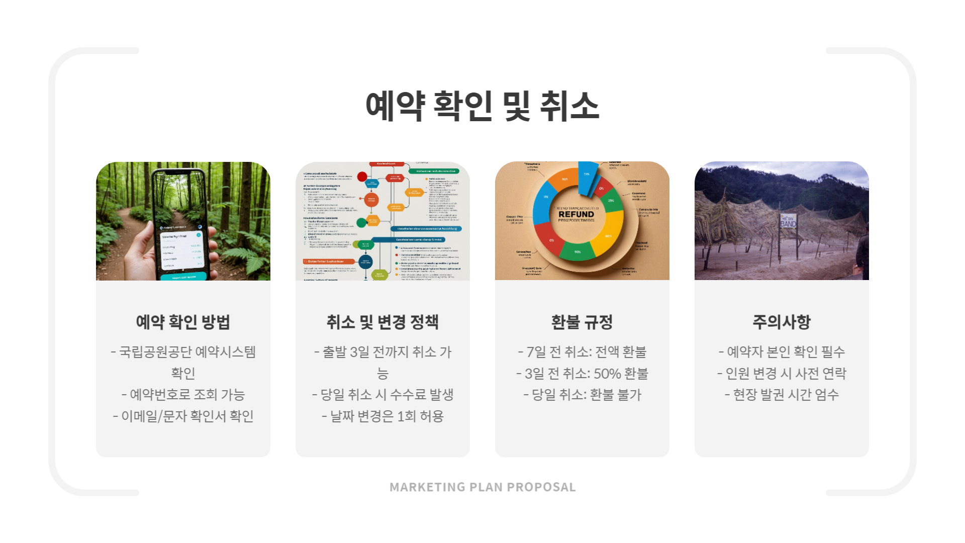 또한 국립공원공단에서 운영하는 예약시스템 외의 비공식 사이트나 여행사 대행 예약은 무효 처리될 수 있으니 주의가 필요합니다.