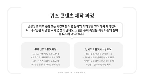 대부분 방송 내용을 기반으로 하는 객관식 또는 주관식 퀴즈입니다.