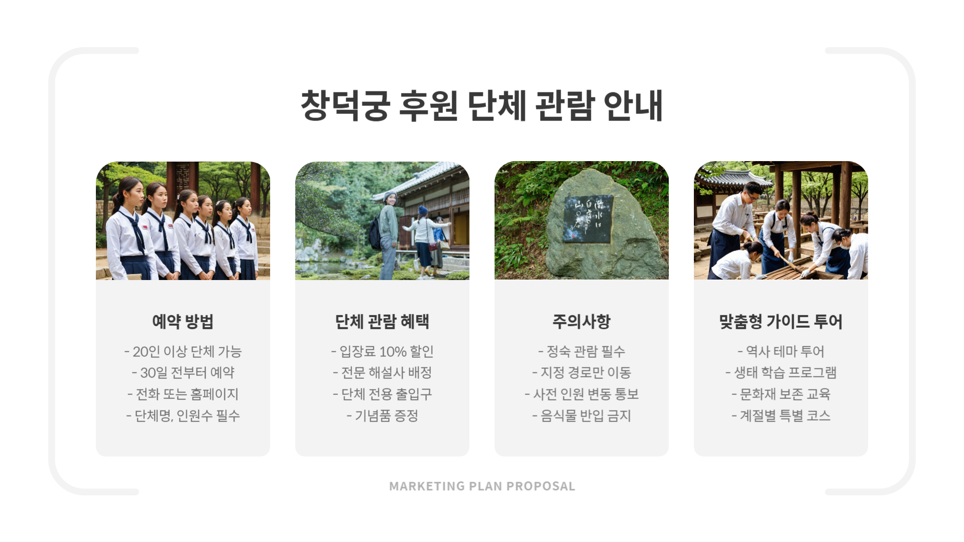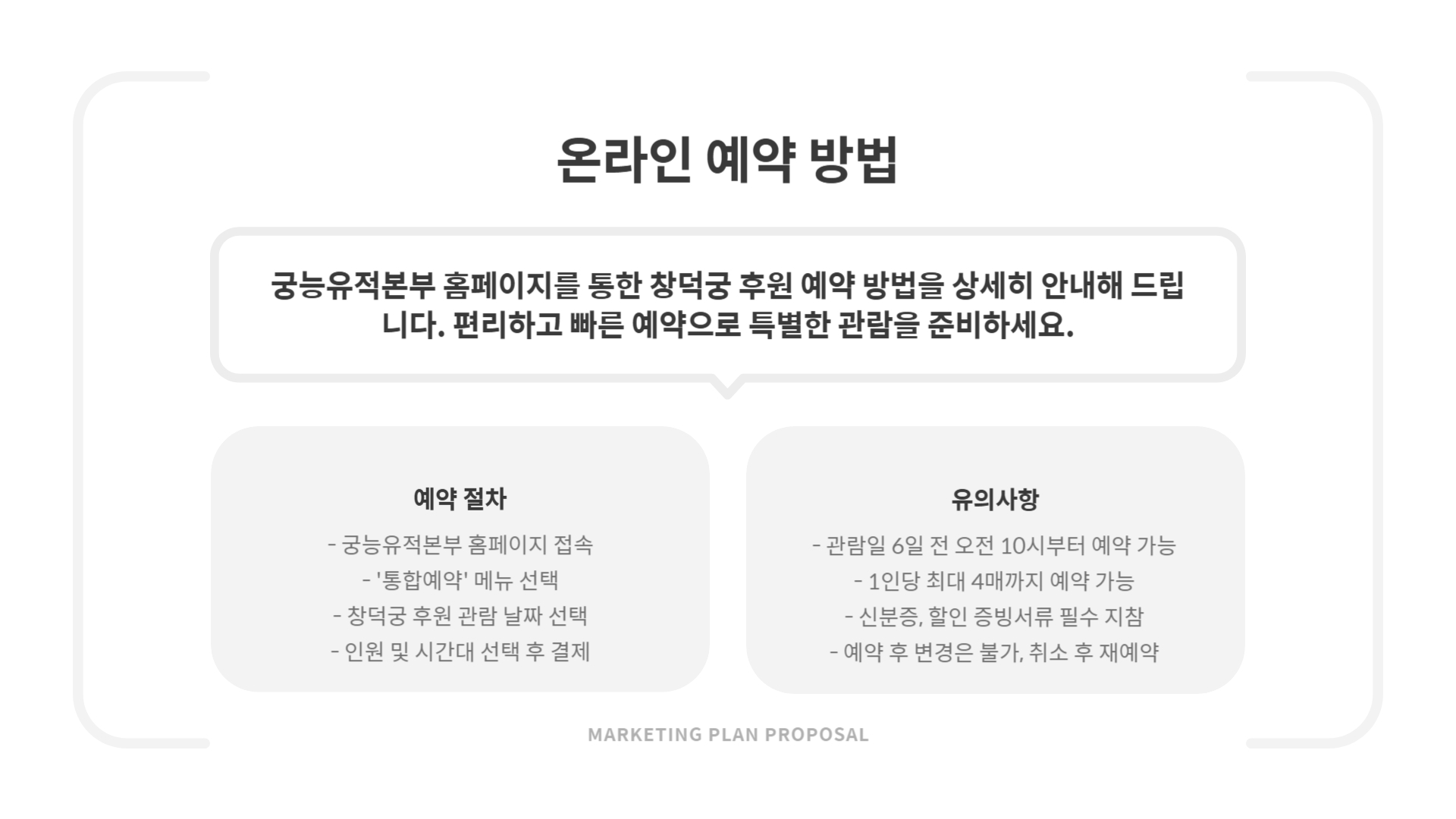 창덕궁 후원예약은 단순한 입장권 구매와는 달리, 시간대별 인원 제한이 있어 선착순 예약 필수입니다.
