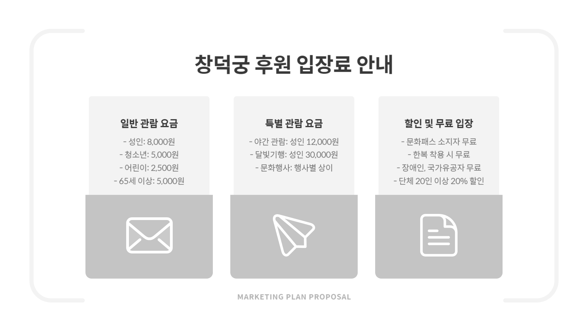 - 창덕궁 입장료(3,000원) + 후원입장료(5,000원)
