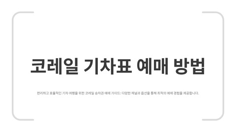 2025년 기준, 모바일과 PC로 가장 빠르고 정확하게 코레일 기차표를 예매하는 방법을 모든 과정과 꿀팁, 자주 묻는 질문까지 포함해 완벽 정리해드립니다.