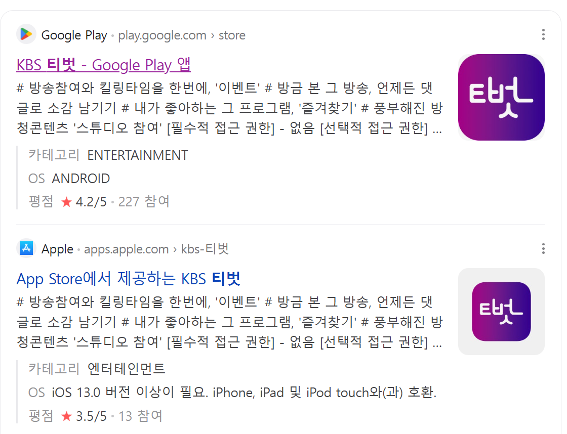 - KBS 계정 또는 SNS 간편 로그인 가능