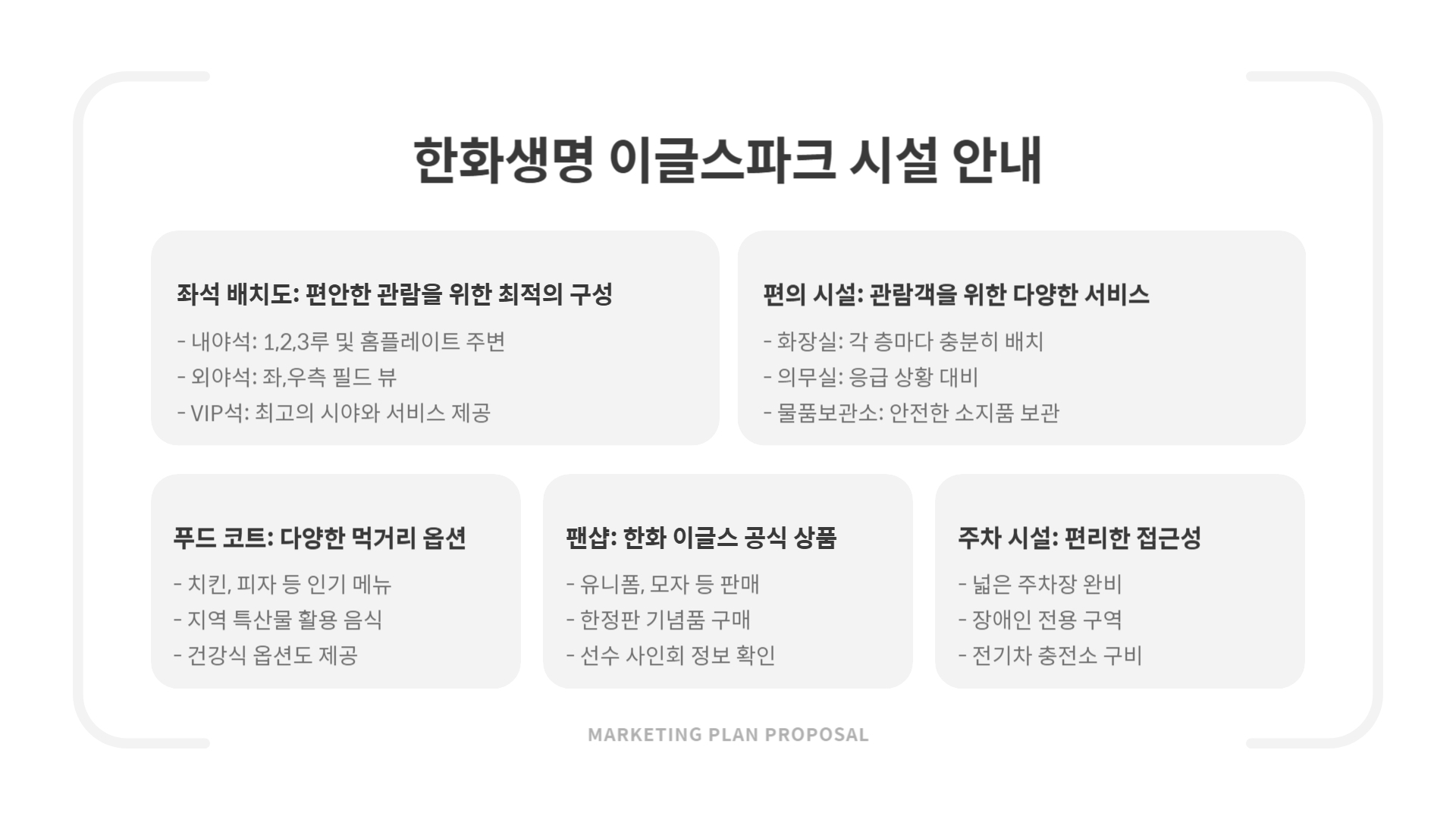 한화이글스 홈구장인 대전 이글스파크의 좌석은 다음과 같이 구성됩니다.