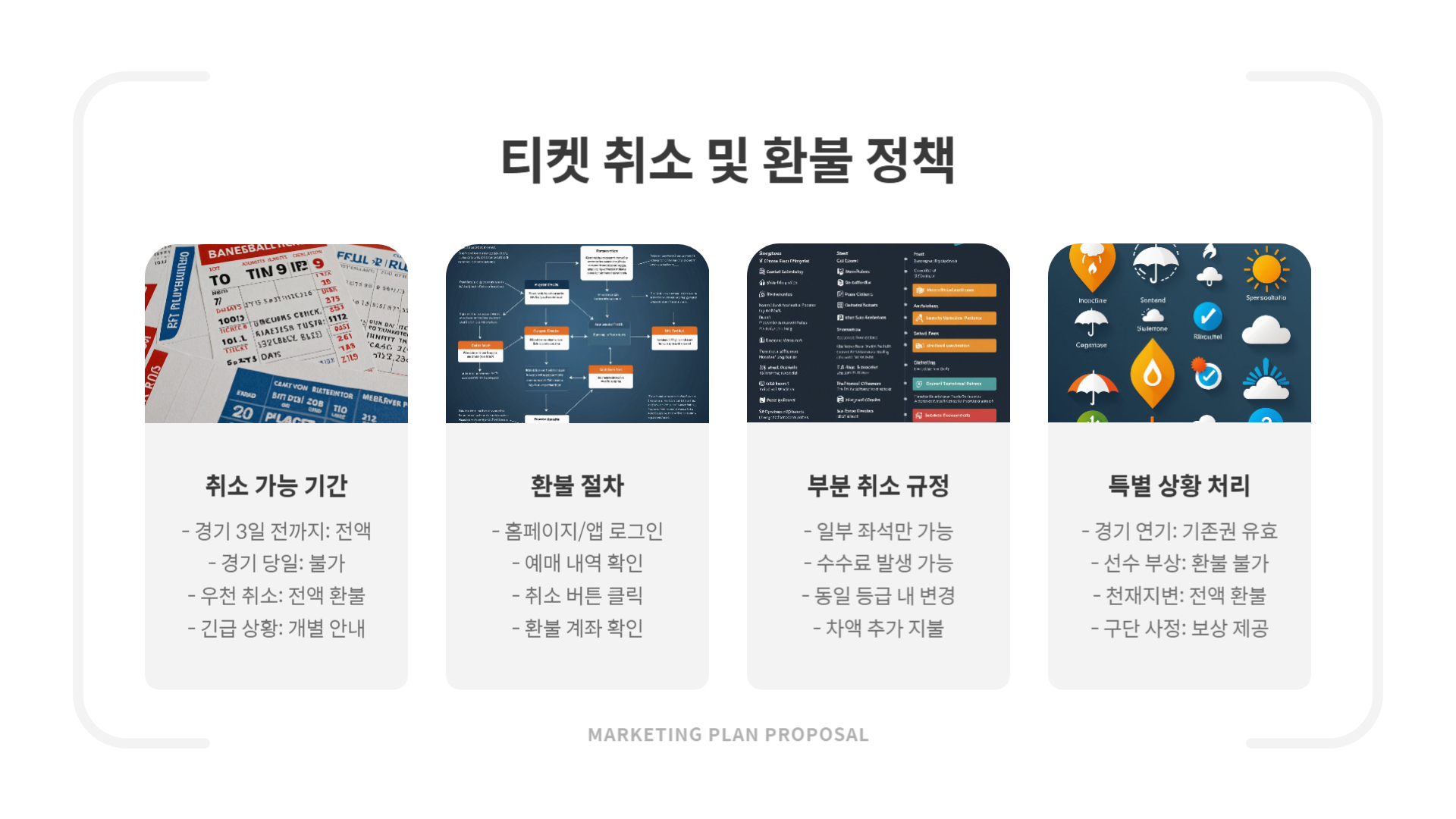 A. 경기 취소 시 예매 수수료 없이 전액 환불됩니다.