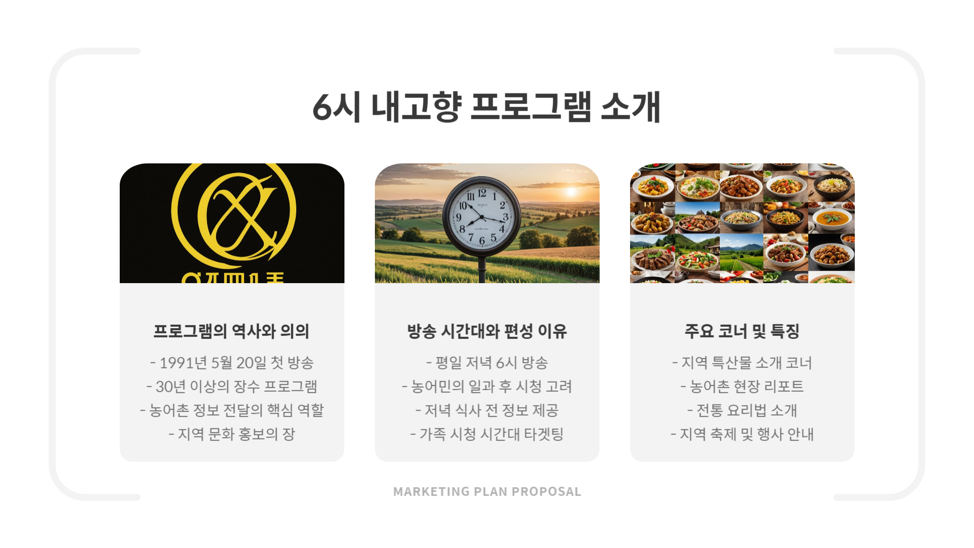 KBS의 대표 장수 프로그램, ‘6시 내고향’은 단순한 방송이 아니라 전국 방방곡곡 살아 숨 쉬는 농어촌의 이야기를 담고 있는 소중한 정보창고입니다.