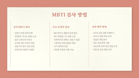 - 공식 MBTI 검사는 전문가와 함께 진행하는 유료 검사입니다.