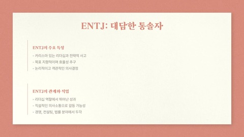 | ENTJ | 주도적으로 발표 | 빠른 의사결정 선호 |