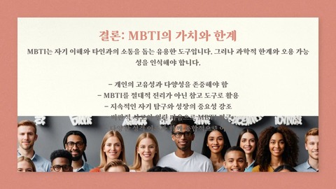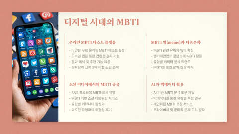 이 네 가지 요인이 만나면서 MBTI는 단순한 심리검사를 넘어 문화 콘텐츠가 되었습니다.
