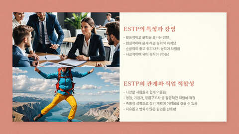 | ESTP | 즉흥적 토론 | 빠른 반응력과 실용적 접근 |