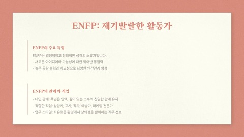 | ENFP | 단조로운 환경 | 창의적 활동으로 전환 |
