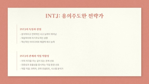 예: ISTJ → 체계적인 공무원, ENTJ → 리더십 요구되는 관리자
